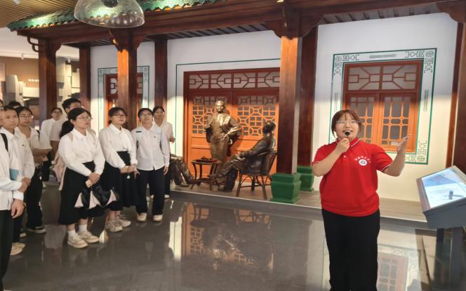 活動伊始,同學(xué)們有序步入校史館。身著紅色志愿服的講解員早已等候在此,她們精神飽滿、笑容親切。在講解員的引導(dǎo)下,大家的目光聚焦于館內(nèi)珍貴的文物和泛黃的老照片。從學(xué)校創(chuàng)立之初的篳路藍縷,到在時代浪潮中不斷奮進的光輝歷程,講解員娓娓道來。那些塵封的故事,如同被點亮的星辰,在同學(xué)們眼前勾勒出海師的發(fā)展脈絡(luò)。大家時而凝神傾聽,時而相互交流,先輩們艱苦創(chuàng)業(yè)、拼搏進取的精神深深觸動著每一個人。