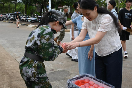張德偉院長(zhǎng)為軍訓(xùn)新生發(fā)放蘋(píng)果
