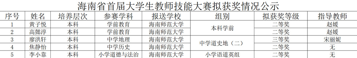 三尺講臺初展鋒芒,育人初心綻放光彩。熱烈祝賀海南師范大學教育學院學子們憑借著扎實的專業(yè)功底、出色的教學素養(yǎng)與從容的現(xiàn)場表現(xiàn)在海南省首屆大學生教師技能大賽中榮獲佳績!
