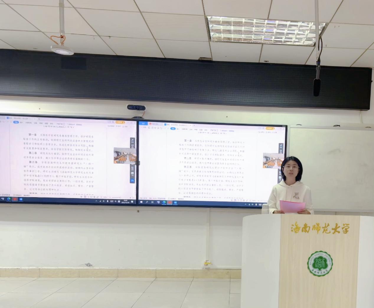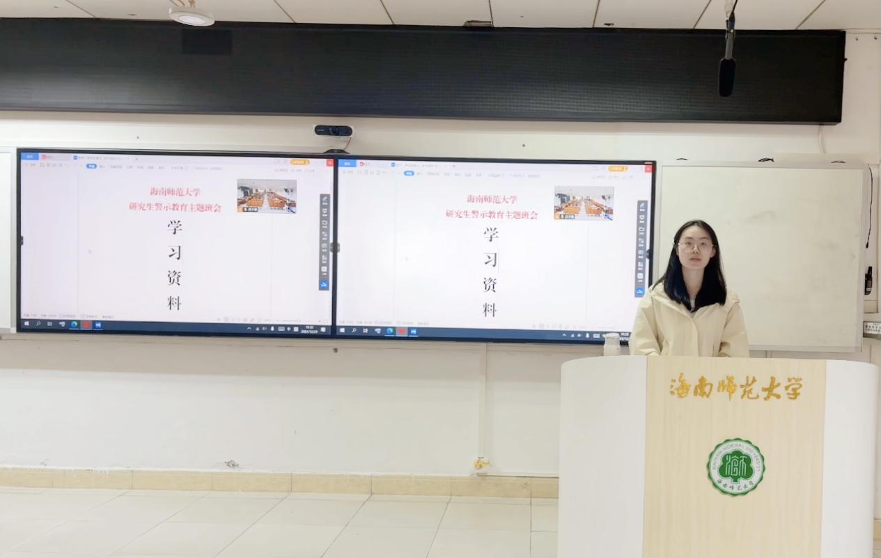 為強(qiáng)化全體同學(xué)的意識(shí)形態(tài)安全防線,進(jìn)一步強(qiáng)化風(fēng)險(xiǎn)防控意識(shí),2025年12月29日10:00,教育學(xué)院全體研究生分別于桂林洋校區(qū)第二公共教學(xué)樓209教室、龍昆南校區(qū)田家炳樓104教室,同步開(kāi)展了警示教育主題班會(huì)。會(huì)上,學(xué)院黨委副書記張歡出席并講話。